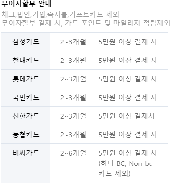◈ 할인혜택 안내 및 카드 무이자 할부