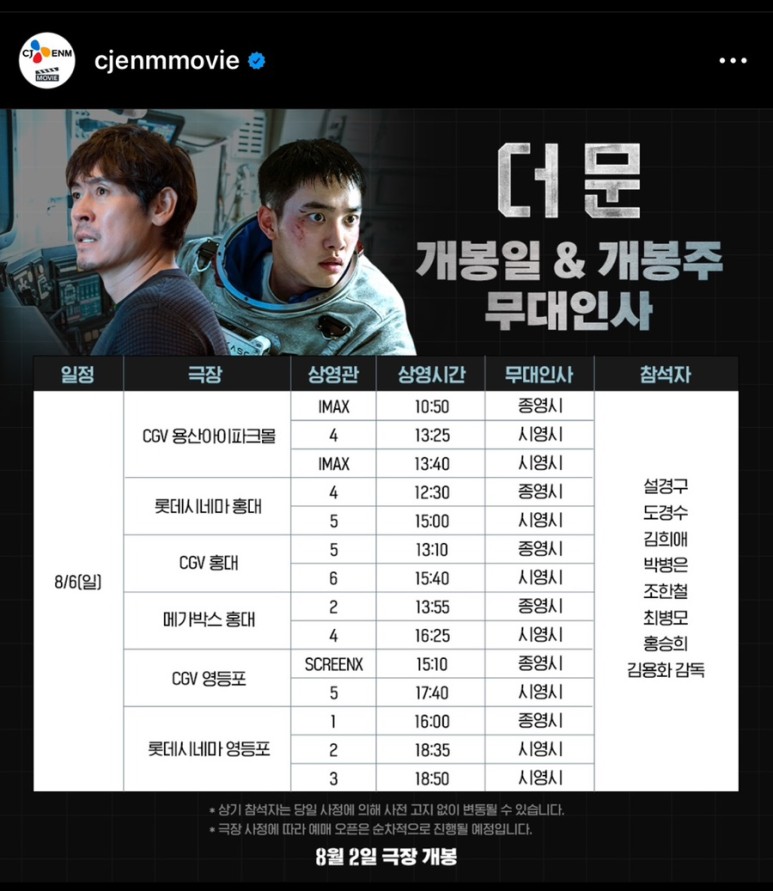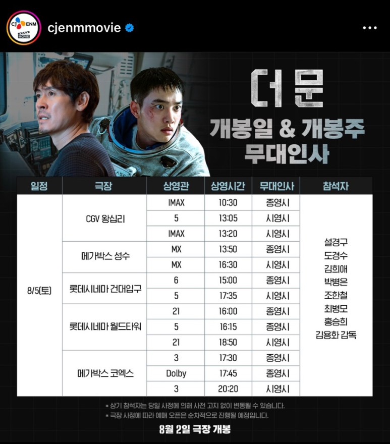 ✅ 8월 2 / 5 / 6일 더문 개봉주&개봉일 무대인사 서울 일정입니다.