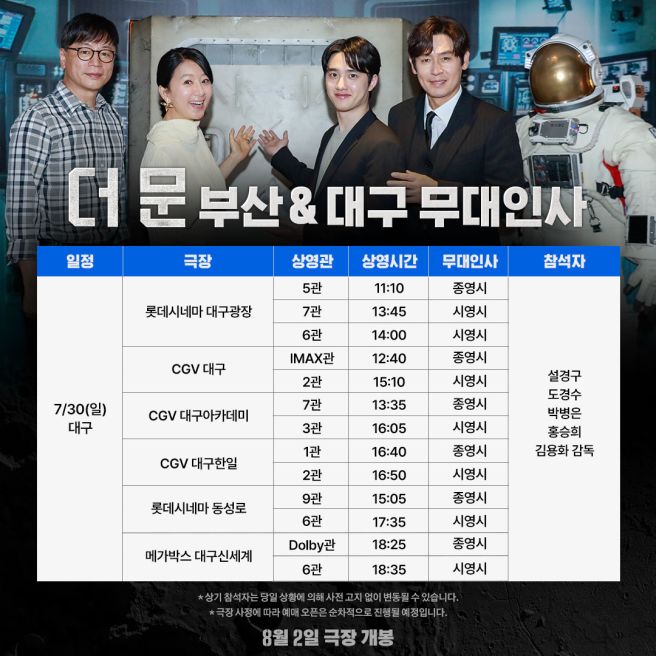 ✅ 7월 29 / 30일 더문 무대인사 부산/대구 일정입니다.