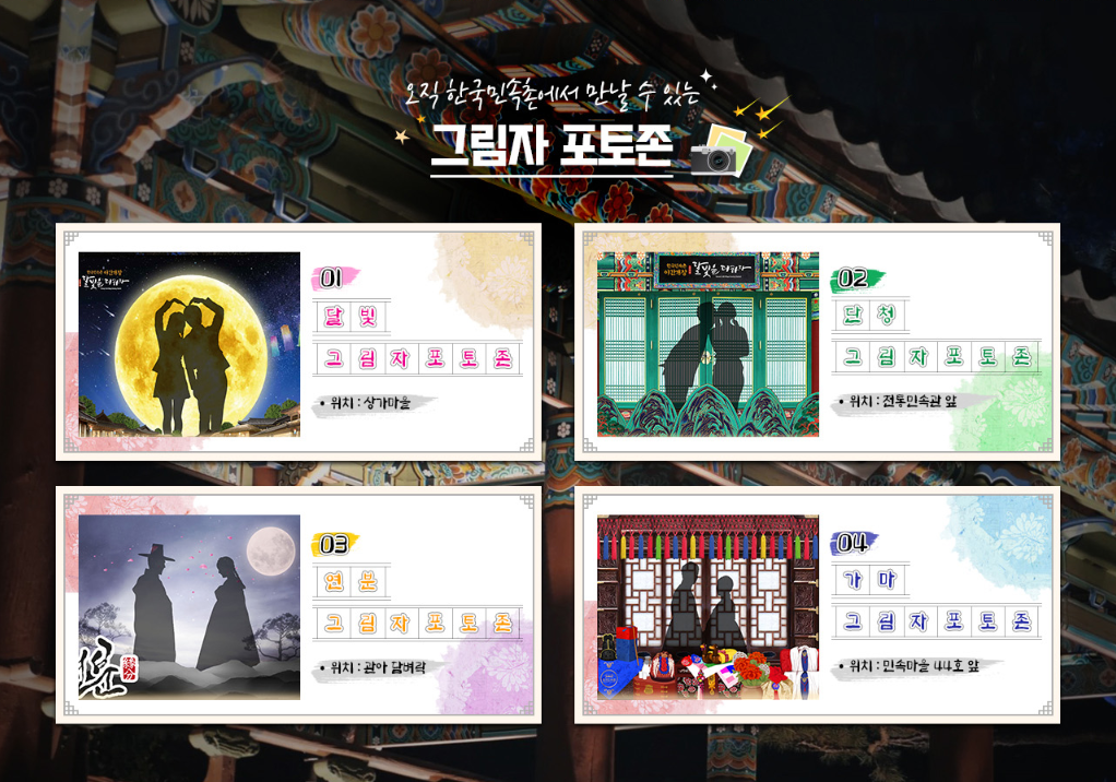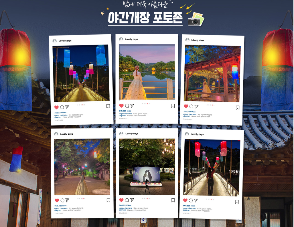 밤이되면 더욱 아름다운 한국민속촌의 SNS감성 포토존입니다.