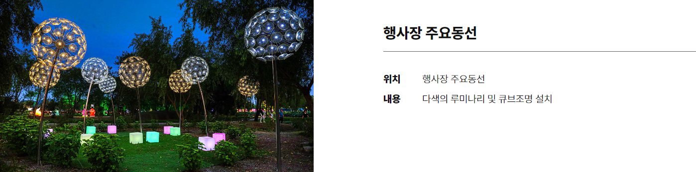 | 21:50 ~ 22:00 | Lotus 볓밤 아트쇼(불꽃놀이) |