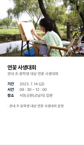 | 09:30 ~ 12:00 | 연꽃사생대회 - 서동공원(궁남지) |