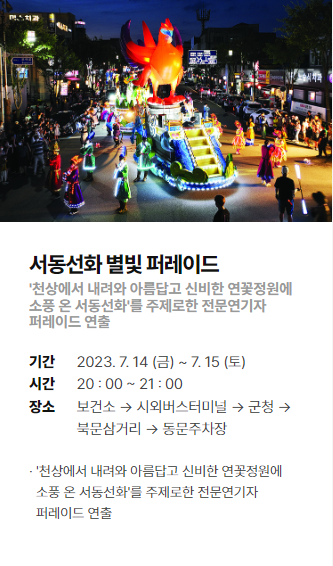 | 20:00 ~ 21:00 | 선동선화 별빛 퍼레이드 - 시가지 |