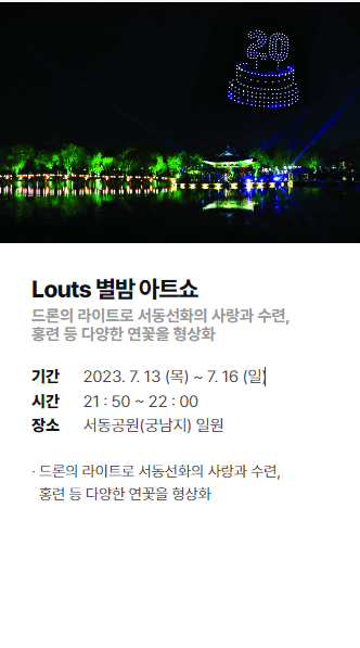 | 21:50 ~ 22:00 | Lotus 별밤 아트쇼(드론) |
