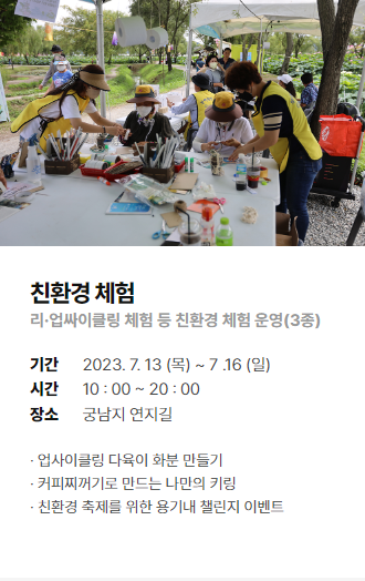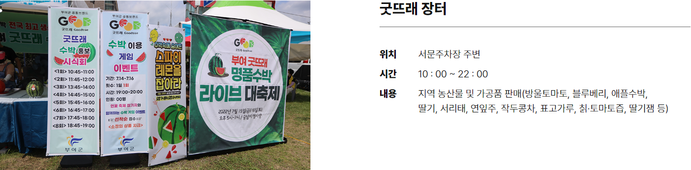 ◈ [굿뜨래 장터 및 궁남지 먹자골목] 운영은 7월 13일(목) ~ 7월 16일(일) 4일간 운영됩니다.