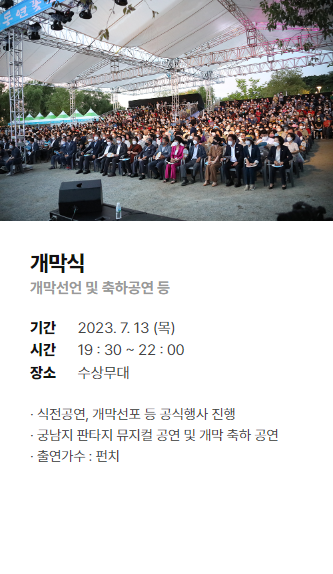 | 21:50 ~ 22:00 | Lotus 별밤 아트쇼(불꽃놀이) |